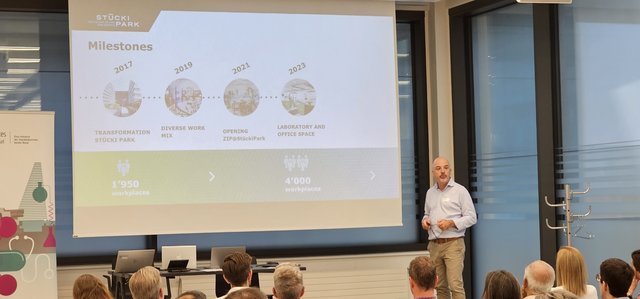 Stücki Park: Marco Kränzlin, Real Estate Site Manager von Stücki Park, stellte die Einrichtung als Destination für Innovation, Gesundheit, Erlebnis und Einkauf vor.