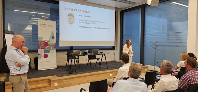 Tech Park Basel: Mitja Messerli, Marketing and Stakeholder Relations bei Technologiepark Basel, präsentierte den Technologiepark Basel.