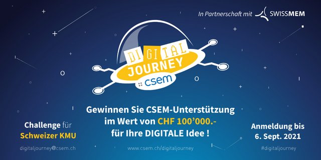 Covid-19 hat in der Wirtschaft Spuren hinterlassen. Um die Erholung der Schweizer KMU zu unterstützen, passt das CSEM seinen Wettbewerb «CSEM Digital Journey» daher auch dieses Jahr an: Statt einem können gleich zwei Schweizer Unternehmen auf technologische Unterstützung in Höhe von je 100 000 Franken für ihr Digitalisierungsprojekt zählen.