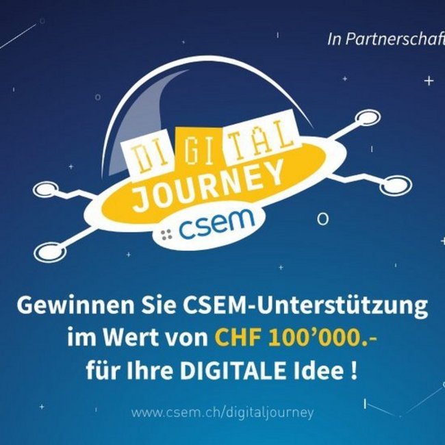 Für die Umsetzung des Projektes stellt das CSEM sein Technologieportfolio und ein Unterstützungspaket im Wert von 100'000 Franken zur Verfügung. Teilnehmen geht ganz schnell und einfach: Stellen Sie sicher, dass Ihr Vorhaben den verfügbaren Technologien entspricht und reichen Sie Ihr Projekt vom 7. Juni bis zum 6. September ein.