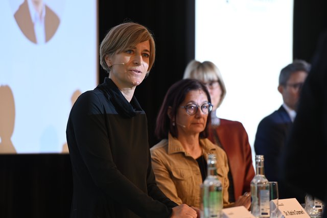 Marie-France Tschudin, Präsidentin von Novartis Pharmaceuticals, erinnerte sich in ihrer Keynote an die pandemiegeprägten Monate: Während der Krise ist sehr schnell sehr viel vorangetrieben worden. Denn es war klar, dass die Gesellschaft als Ganzes sonst leiden würde. So hat sich das auf Individuen fokussierte Gesundheitssystem zu einem Public-Health-System gewandelt. Am Beispiel von Herzkreislaufkrankheiten als häufigste Todesursache in der Schweiz erklärt sie, dass 80 Prozent dieser Todesfälle verhindert und damit Leid und riesige Summen eingespart werden könnten. Die Identifikation und Behandlung der Risikofaktoren sind nicht allzu komplex. Hier setzt Novartis an: Das Pharmaunternehmen will verhindern statt behandeln. Deshalb fokussiert sie sich mit ihrem Team auf Partnerschaften, passende Rahmenbedingungen, und Anreize für Ärztinnen und Ärzte, sich vermehrt präventiv einzuschalten. Damit kann dem Gesundheitssystem als Ganzes geholfen werden, als gemeinsames Ziel.