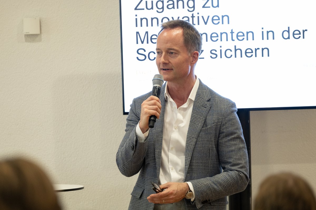 In ihrer Deep Dive Session «Patientin Schweizer Gesundheitswirtschaft?» brachte die Handelskammer beider Basel führende Akteurinnen und Akteure aus dem Life Sciences Cluster Basel in parallelen Diskussionsrunden mit Input von Prof. Dr. Adrian Roth, Principal Scientific Director F. Hoffmann-La Roche, David Traub, Geschäftsführer Novartis Pharma Schweiz AG, und Stefan Inglin, Beteiligungsmanager Gesundheitsdepartement Kanton Basel-Stadt zusammen. Ausgangspunkt war der zunehmende Druck auf die Schweizer Gesundheitswirtschaft – von Standortwettbewerb und Regulierung bis hin zu Fachkräfte- und Innovationsfragen.